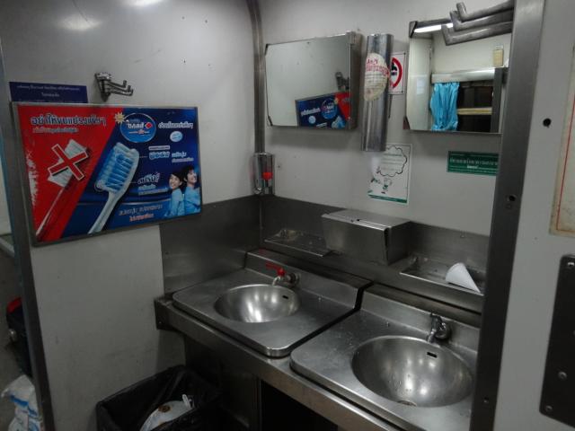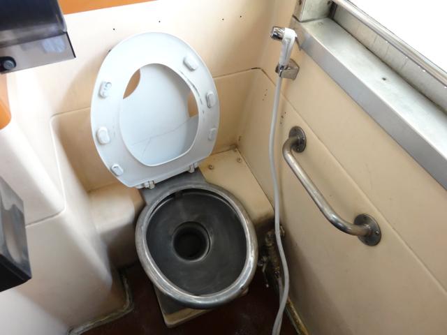 こちらは洋式トイレ。タイ国鉄は線路の状態が悪くかなり揺れるので快適性はありません。