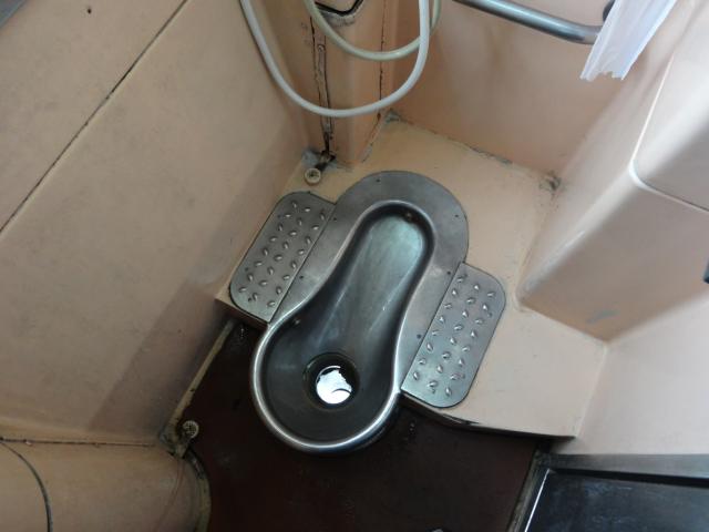 こちらがタイ式トイレ。穴からは線路が見える所謂「野に放つタイプ」なので停車中のご利用は計画的にです・・・