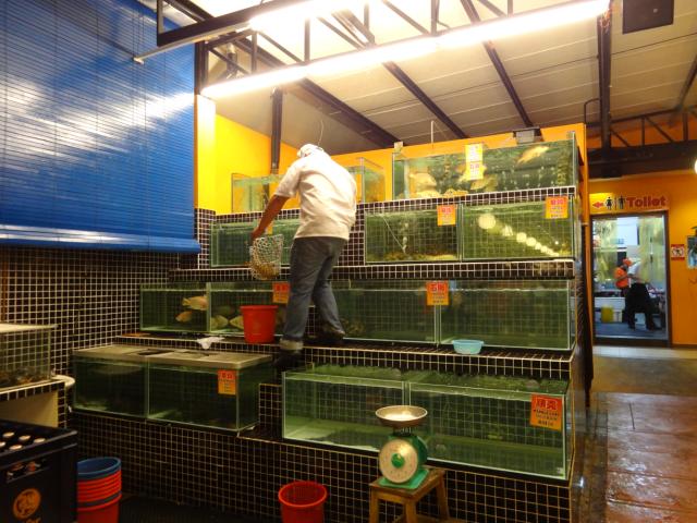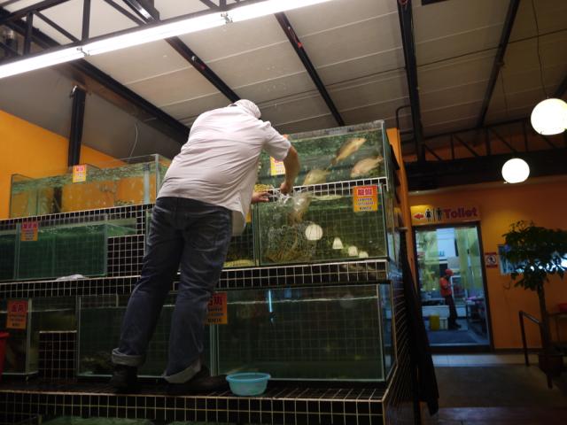 魚やエビ、蟹などの海鮮を水槽で選んで好みの調理法で料理してくれる、東南アジアの海鮮料理のお店ではメジャーな注文方法です。