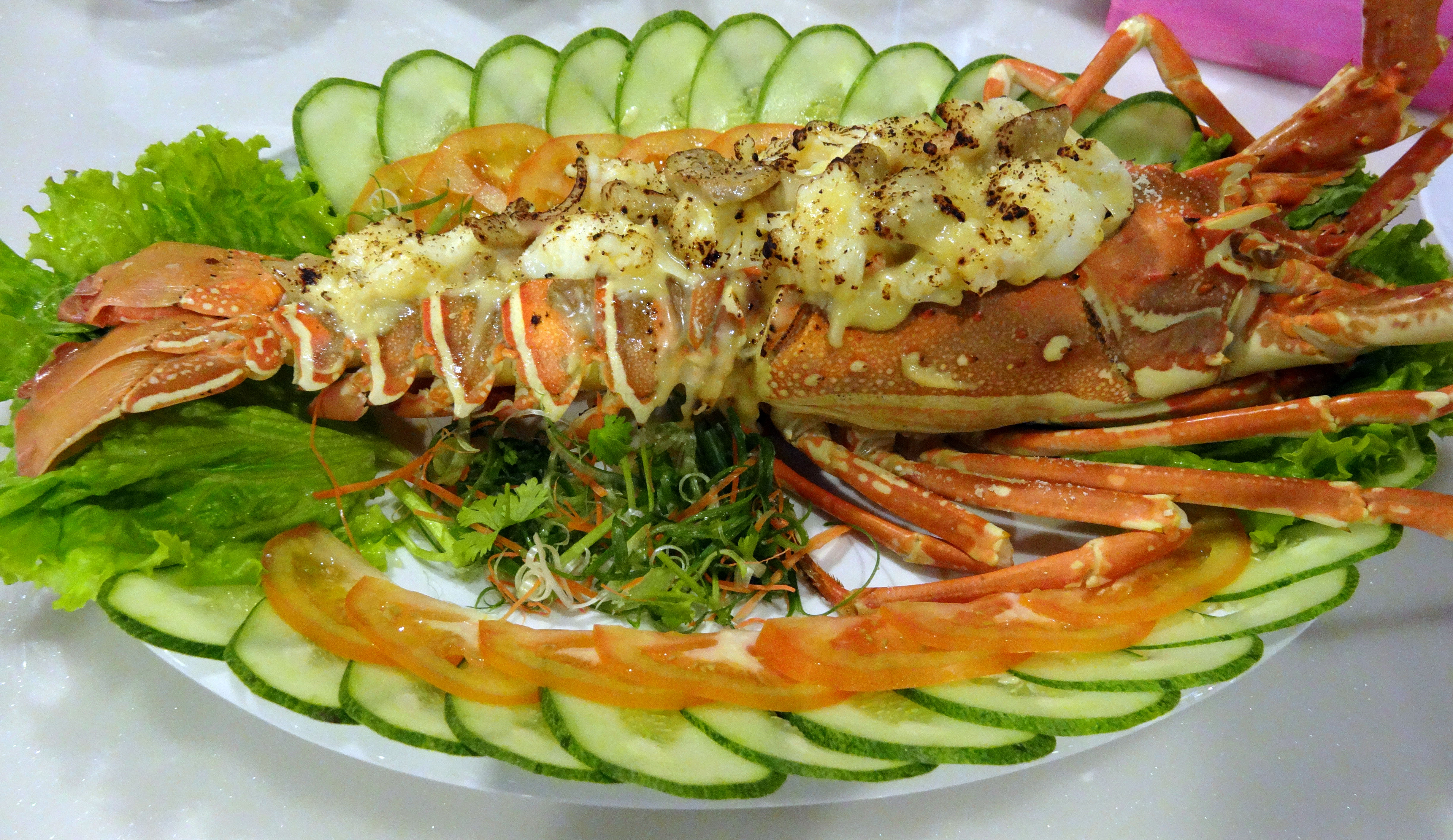 伊勢エビのチーズグラタン。水槽で見た時はそんなに大きく感じませんでしたがテーブルに運ばれてくるとかなり大きく見えました。