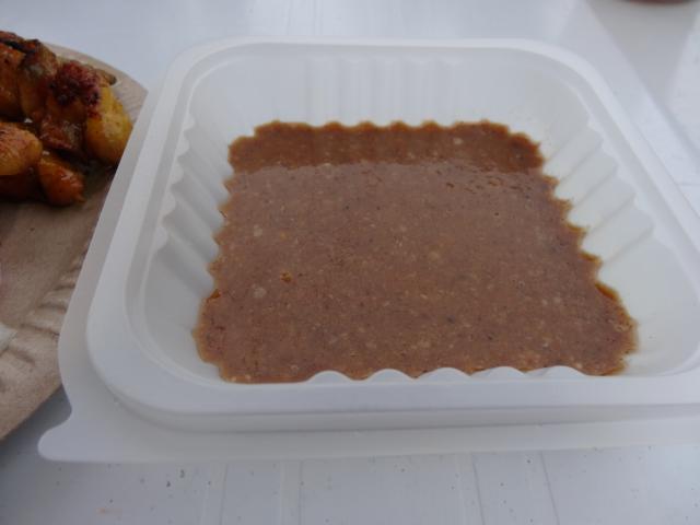 席に戻り、袋に入ったソースを開けてみると・・・ う~ん、ちょっと魚臭い味噌って感じの臭い。