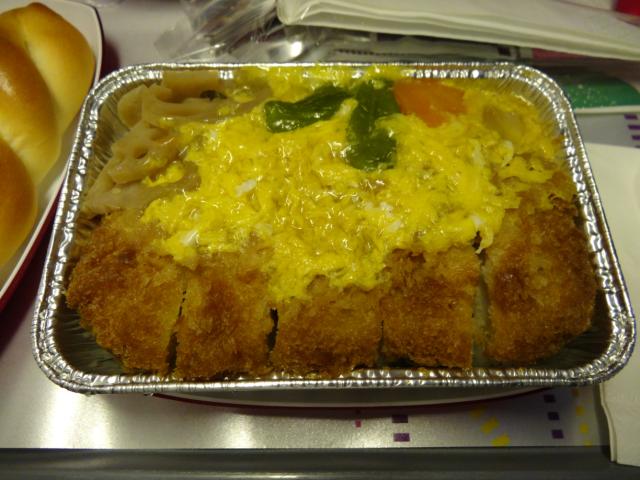 っていうか、カツ丼です。読書灯で照らされると刑事ドラマの取り調べみたいになります。