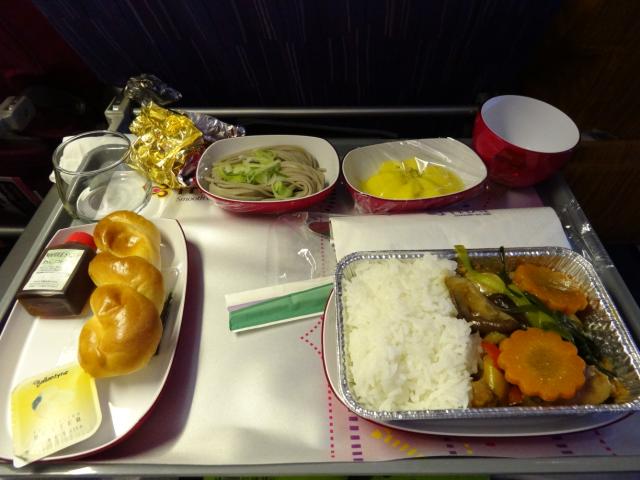 飛行機旅のお楽しみ、食事の時間です。