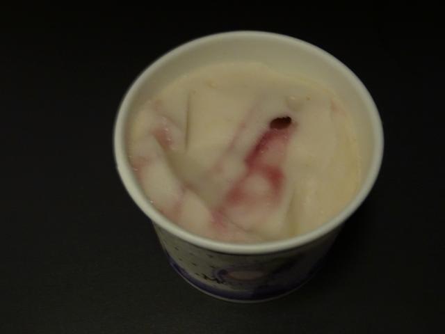 バンコク到着の1時間前位になるとアイスクリームが配られるのですが、この日はマンゴスチンアイス。