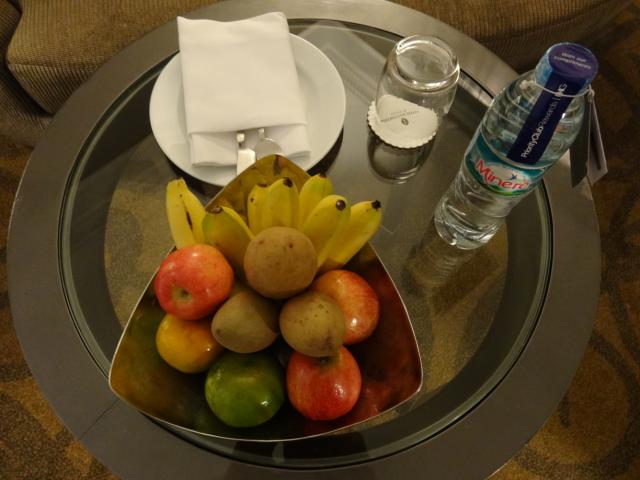 ウエルカムフルーツとミネラルウォーター。