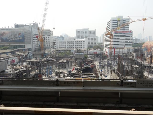 以前に起こったデモで放火されてしまったサイアムスクエアは再建工事中でした。