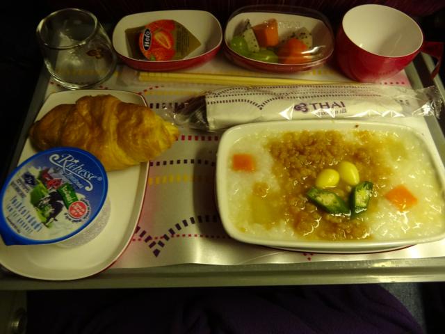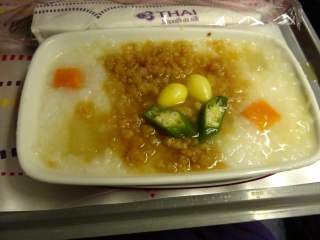 朝食の機内食はポークおかゆを選びました。