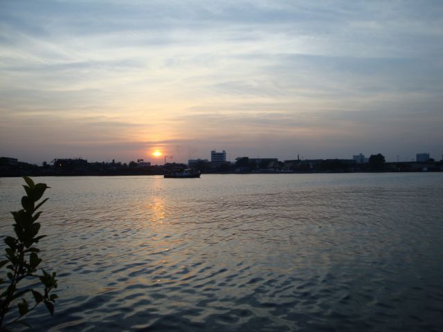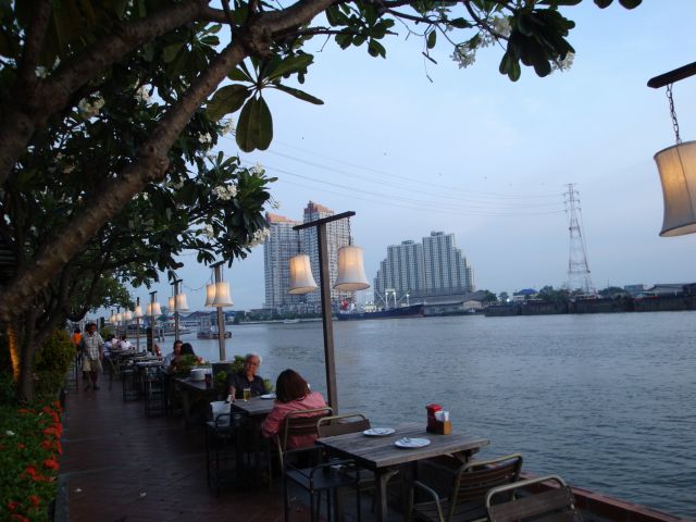 なんとしても雰囲気が良く、チャオプラヤの夕日を眺めながらの夕食をしてみたかった。