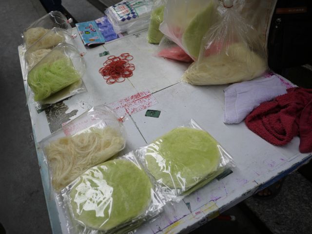 慣れないうちはタイで見かける「色彩」にびっくりすることが多いが、ピンクは食紅、緑はパンダンリーフで色付け。